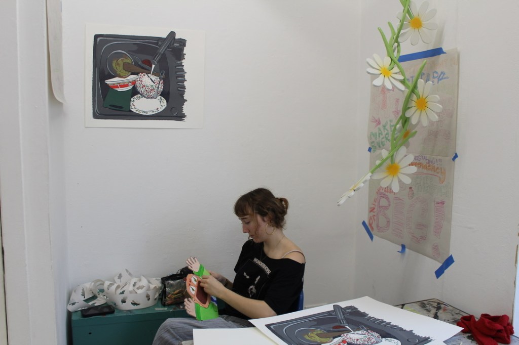 here is a slightly better photo my friend took of me working in the studio!